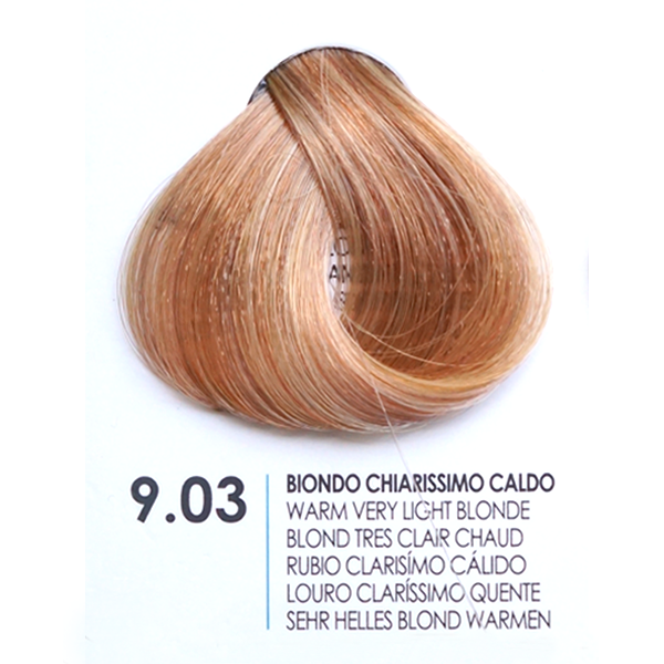 Цвят 9.03 - много светъл блондин с топли оттенъци, идеален за покритие на бели коси.