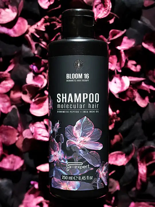 BLOOM 16 Molecular Hair Shampoo е иновативен безсулфатен шампоан, създаден по биомиметична технология за целенасочена регенерация на косъма и грижа за скалпа. Формулата му е обогатена с пребиотици, фитокератин, пептиди и органично масло от Инка Инчи, които възстановяват структурата на косата в дълбочина. Изключително икономичен и нежен, шампоанът съчетава наука и природа за видимо по-здрава, еластична и сияйна коса.