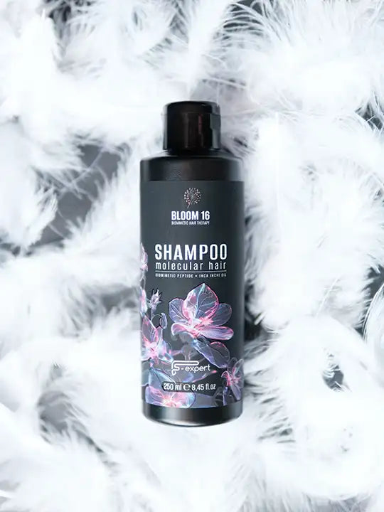 BLOOM 16 Molecular Hair Shampoo е иновативен безсулфатен шампоан, създаден по биомиметична технология за целенасочена регенерация на косъма и грижа за скалпа. Формулата му е обогатена с пребиотици, фитокератин, пептиди и органично масло от Инка Инчи, които възстановяват структурата на косата в дълбочина. Изключително икономичен и нежен, шампоанът съчетава наука и природа за видимо по-здрава, еластична и сияйна коса.