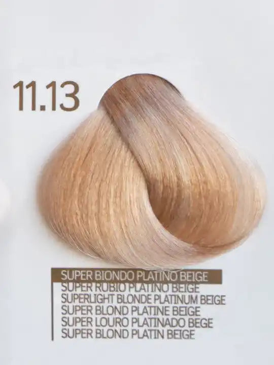 Цвят на коса 11.13 Superlight Blonde Platinum Beige, италианска крем-боя, ефектен нюанс за блестяща визия.