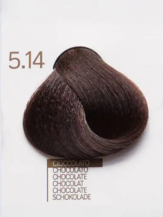 Design Look 5.14 Chocolate hair color swatch showcasing rich, deep brown shade with keratin and nourishing ingredients.