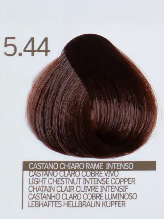 Design Look 5.44 Light Chestnut Intense Copper hair color sample showing rich, vibrant shade with warm undertones.