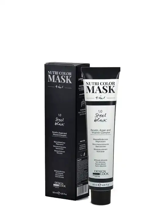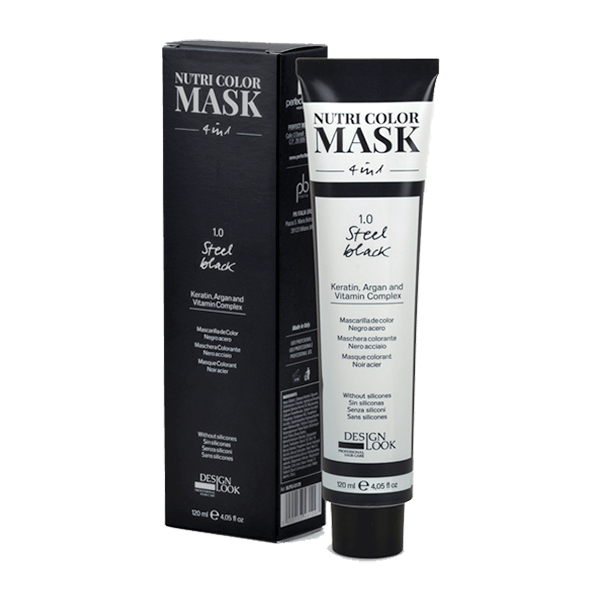 Цветна маска 4 в 1 с кератин, арган и витаминен комплекс в черен цвят.