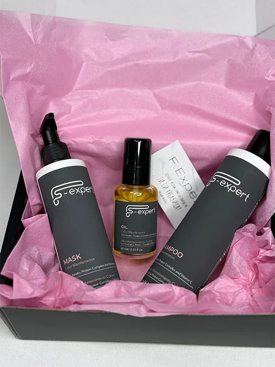 Универсална маска от серията на F-expert, подходяща за всеки тип коса, от най-тънка и проьозна до най- плътна и гъста коса. Иновативна формула с кератин, протеинов комплекс и витамин С, насища, подхранва и запечатва цвета на косата. Подава блясък, запазва косата копринено мека и хидратирана без да я утежнява. Запазва здравината на косъма, предотвратявайки запитвания и осигурява по-интензивен и издръжлив цвят.