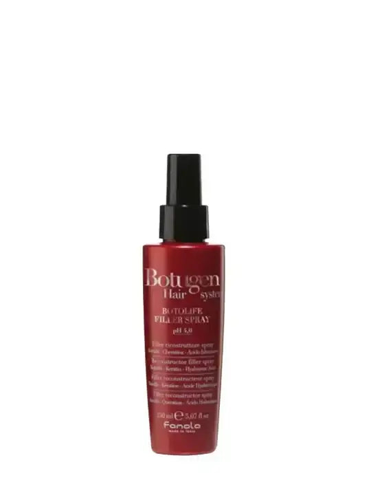 Спрей филърът Fanola Botugen е създаден за третирана, тънка и силно увредена коса, която се нуждае от възстановяване, уплътняване и укрепване. Обогатен с хиалуронова киселина, продуктът прониква в структурата на косъма и възстановява неговата плътност и сила отвътре навън.