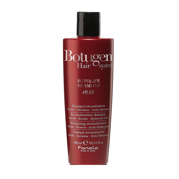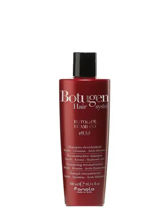 Шампоанът Fanola Botugen е създаден специално за силно увредена коса, нуждаеща се от възстановяване и дълбоко почистване. Формулата с pH 5.5, без сулфати и добавена сол, деликатно отстранява замърсявания, остатъци от стилизиращи продукти и минерални натрупвания, без да дразни скалпа.