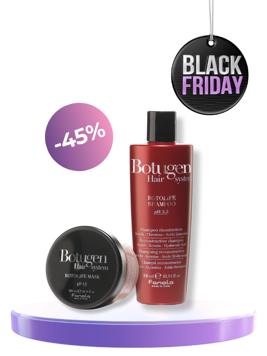 Шампоанът Fanola Botugen е създаден специално за силно увредена коса, нуждаеща се от възстановяване и дълбоко почистване. Формулата с pH 5.5, без сулфати и добавена сол, деликатно отстранява замърсявания, остатъци от стилизиращи продукти и минерални натрупвания, без да дразни скалпа.