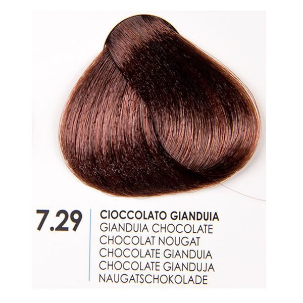 Fanola 7.29 Chocolate Gianduia hair color swatch, showcasing rich brown hues for vibrant hair coverage.