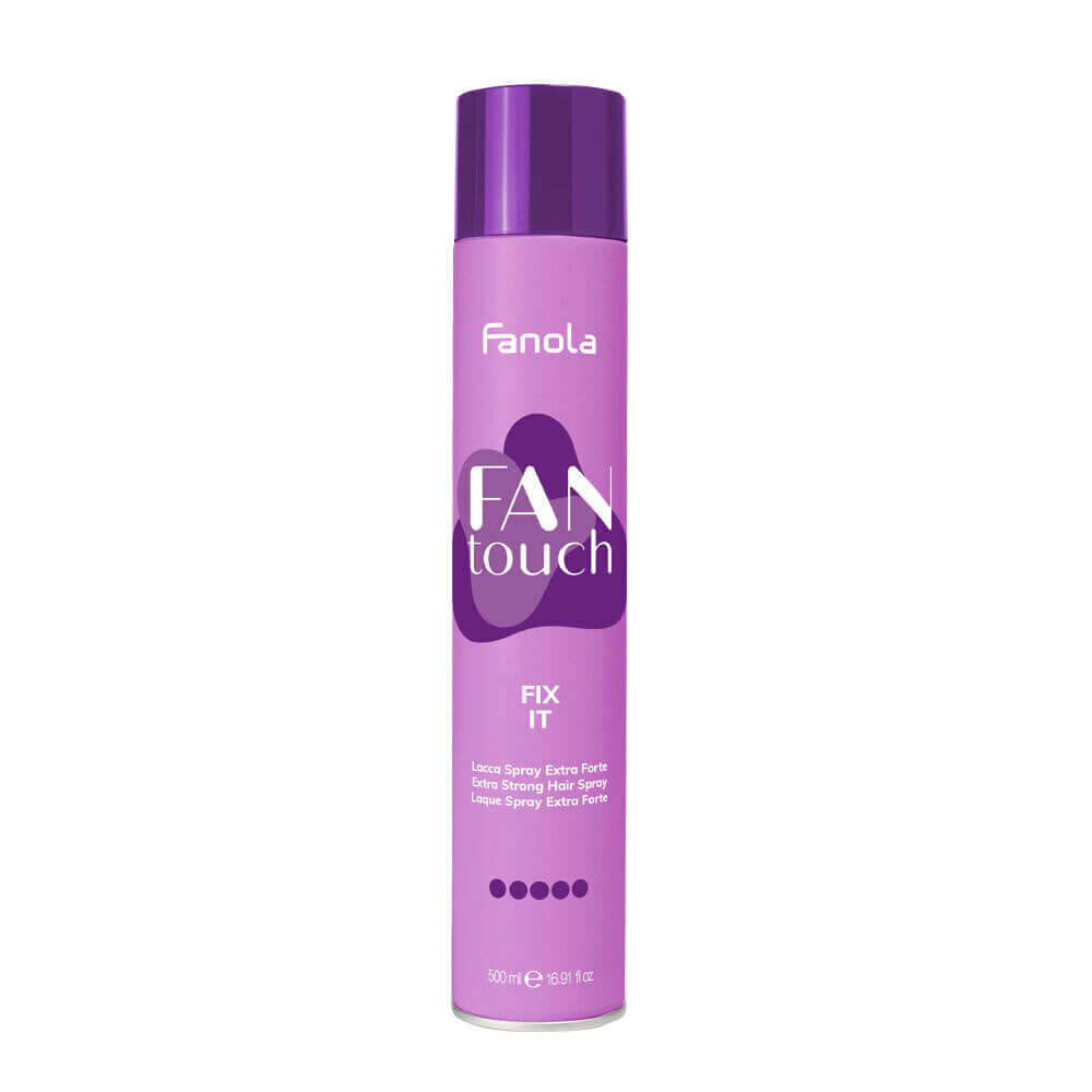 FIX IT лак със силна фиксация е част от иновираната серия стилизанти на FANOLA – FAN TOUCH. Лак, подходящ за ежедневен стайлинг за непокорни коси. Спреят е идеален за всеки тип коса и е пръв помощник на професионалистите. FIX IT лак за коса за финиш на официални прически, заглаждане и дълготрайност на избрания от вас стайлинг. Нова формула пречистени и подбрани стилизанти от FAN TOUCH – FIX IT.
