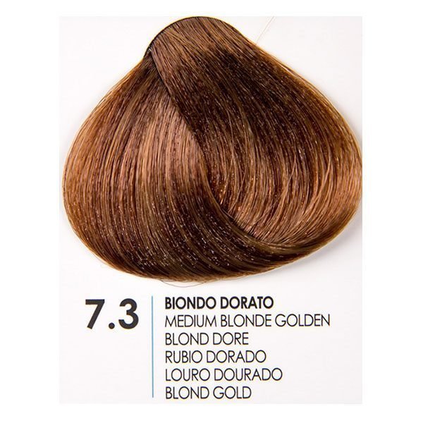 Sample of Fanola 7.3 Medium Blonde Golden hair color showing rich, warm tones and shine.