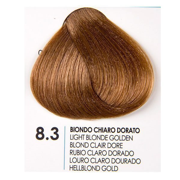 Fanola 8.3 Light Blonde Golden hair color sample, showcasing rich golden tones and shine for vibrant hair.