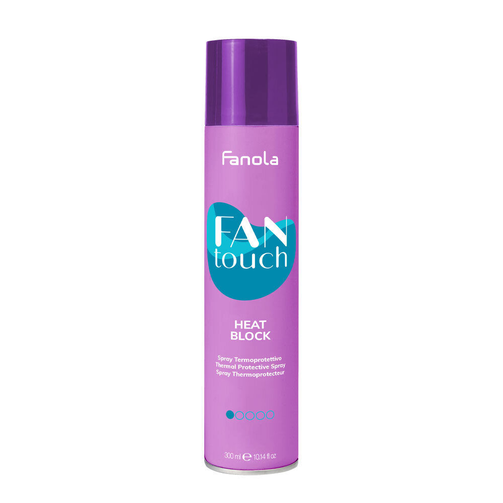 Термозащита HEAT BLOCK е част от иновираната серия стилизанти на FANOLA – FAN TOUCH. Термозащитният спрей създава филм около косъма, който го предпазва от високи температури. Термо спрей, създаващ протекция на косата. Термоспрей, подходящ за ежедневна употреба при използването на топлинни уреди. Спреят запазва косата здрава и защитена, спомага за лесното разресване и предотвратява наелектризирането на косата. Има заглаждащ блясък ефект. Нова формула пречистени и подбрани стилизанти от FAN TOUCH – HEAT BLOCK.