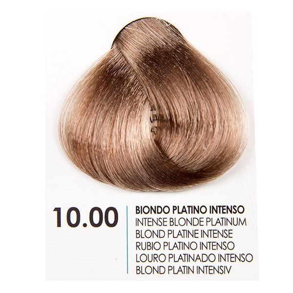 Цветови отенък 10.00, интензивно блонди платина, показващ мек и сияен оттенък.