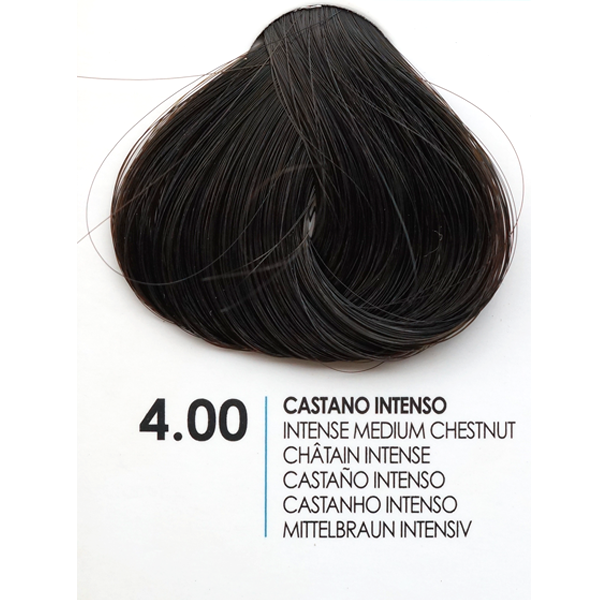 Цветови мостри на боя за коса Fanola 4.00 - интензивно средно кестеняво с богат униформен цвят.
