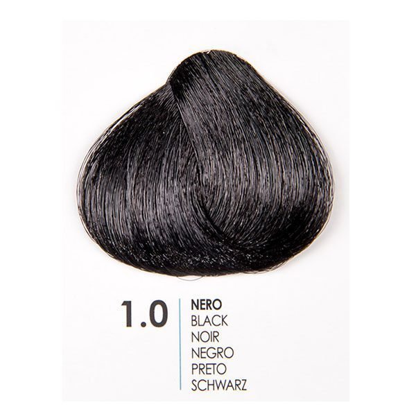 Ст수 1.0 черна боя за коса Fanola, наситен черен цвят с дълготрайно покритие и грижа.