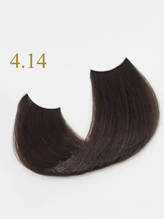 Цветови нюанс 4.14 на боя за коса Oro Therapy, кестеняво с леко червен отенък.