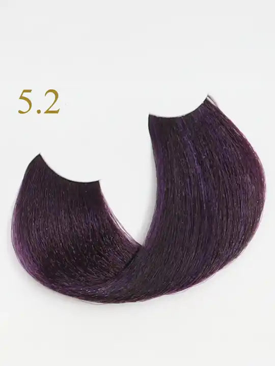 Шевове на боя за коса Oro Therapy 5.2 Light Chestnut Violet, наситен лилав оттенък.