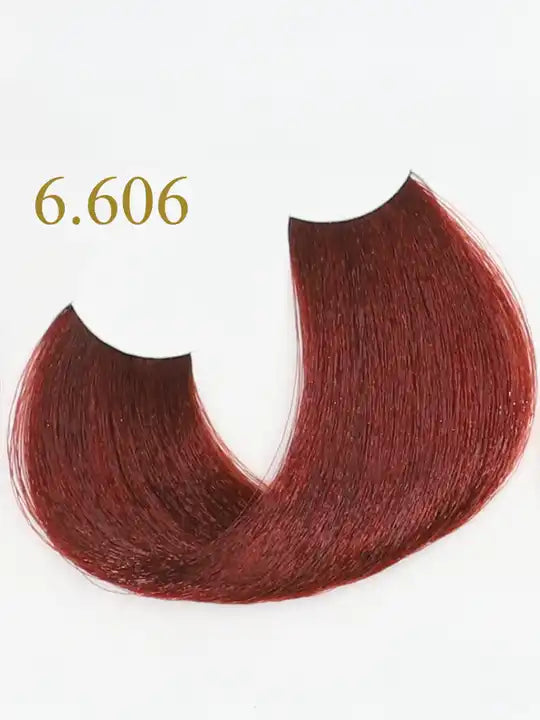 Цвят 6.606 тъмно рус с топъл червен нюанс проба от боя за коса Oro Therapy.