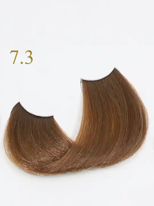 Цвят 7.3 Medium Blonde Golden - безамонячна боя за коса Oro Therapy с богатство от кератин и масла.