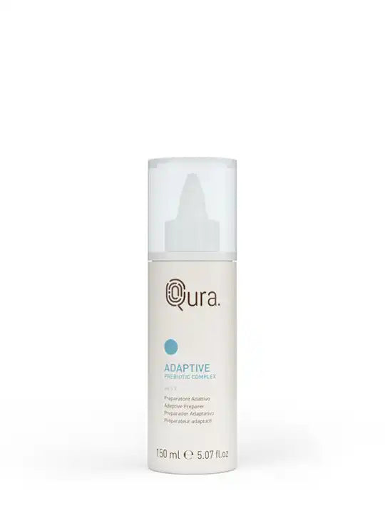 Адаптивният пребиотичен комплекс на Qura е иновативен продукт с pH 5.5, създаден да възстановява баланса на кожата и скалпа, като едновременно почиства и защитава. Благодарение на внимателно подбраните натурални съставки и пребиотична формула, той регулира микробиома и се адаптира към индивидуалните нужди на кожата. Комплексът е особено ефективен преди и по време на химични процедури в салона, действайки като предпазна бариера.