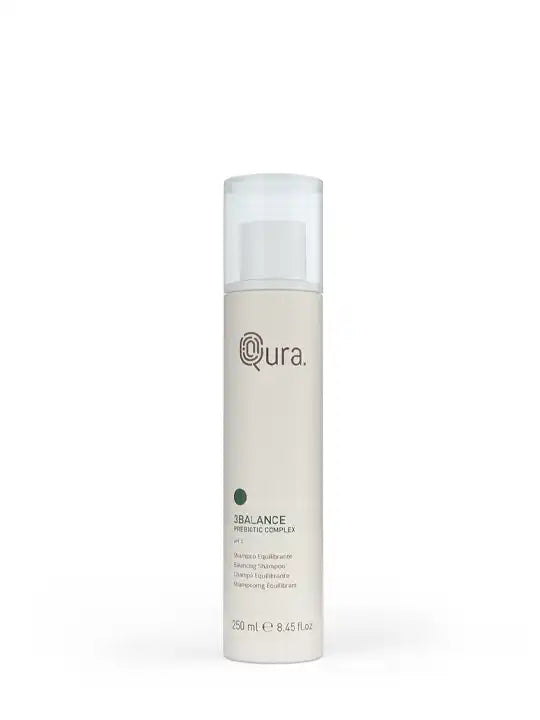 Балансиращият шампоан с пребиотичен комплекс 3Balance от Qura е създаден за скалп, склонен към омазняване, раздразнения и лющене. Формулата с 95% натурални активни съставки и pH 5 подпомага възстановяването на микробиомния баланс, редуцира пърхота и регулира себумната секреция. Продуктът е особено подходящ както за интензивна терапия, така и за профилактична грижа за чувствителен и дисбалансиран скалп.