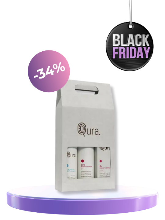 Адаптивният пребиотичен комплекс на Qura е иновативен продукт с pH 5.5, създаден да възстановява баланса на кожата и скалпа, като едновременно почиства и защитава. Благодарение на внимателно подбраните натурални съставки и пребиотична формула, той регулира микробиома и се адаптира към индивидуалните нужди на кожата. Комплексът е особено ефективен преди и по време на химични процедури в салона, действайки като предпазна бариера.